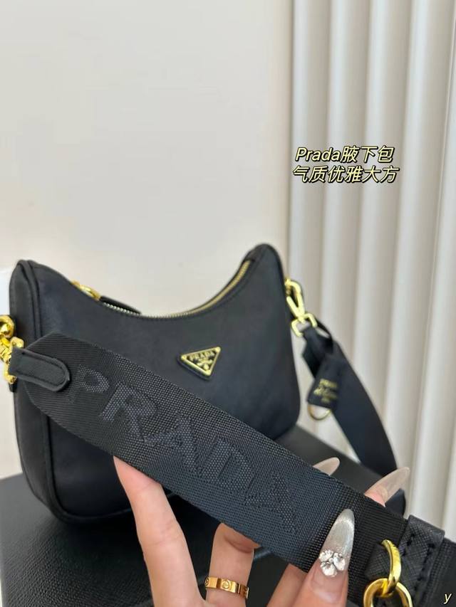 配盒子 普拉达腋下包 Prada如影随形 充满了不一样的帅气感 甜酷辣妹穿搭必备 尺寸:22.13