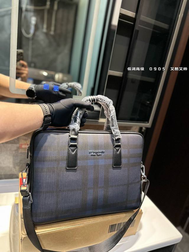 高端货 “Burberry”巴宝莉公文包原厂面料 高清五金logo标志、专用内里。电脑隔层 顺滑拉链、油边平滑、带拉链暗袋 做工精致每个细节到位!黑蓝色。男人必备款。规格38 27 6Cm