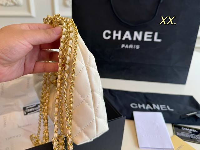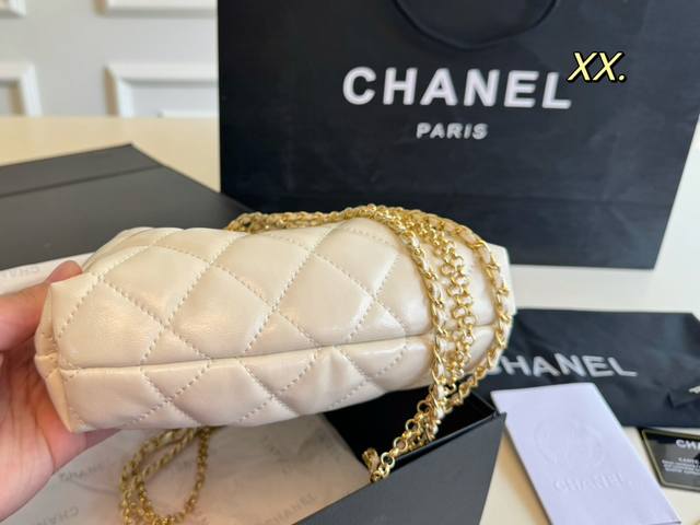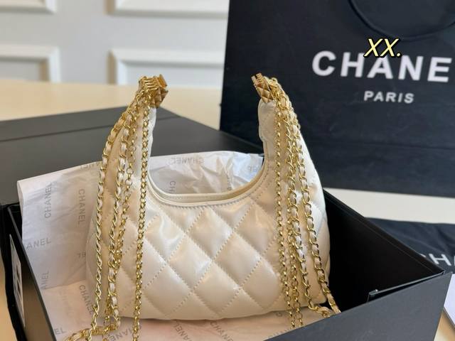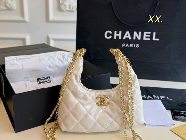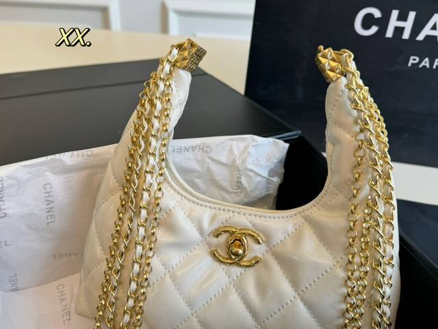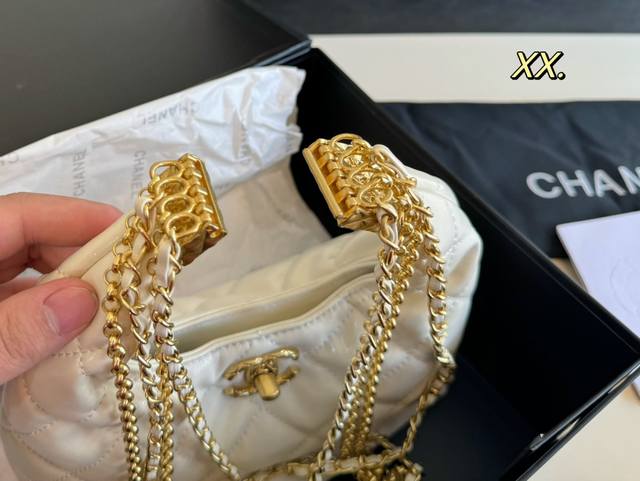 折叠盒 Size:21×15 Chanel香奈儿新款24A Hobo链条包 又是一个大爆款重工链条包 上身效果非常棒,时尚经典百搭 超级精致 扣起来像个小小的饺