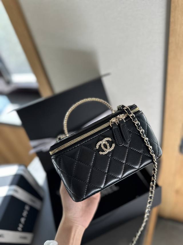 Chanel 新品 高级镶钻手柄 盒子包 化妆包 小箱子 最近的盒子包系列真的好火,小盒子当然是异常可爱啦。尺寸 18Cm