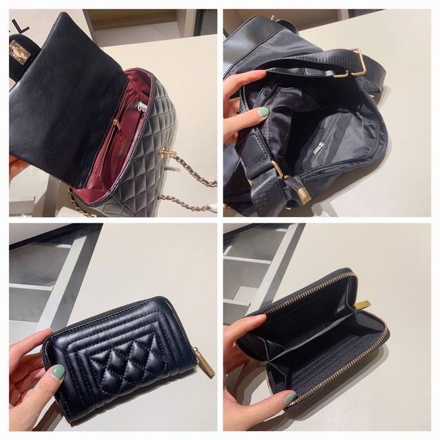 产品介绍 香奈儿专柜新款组合chanel专柜同款cf手提链条包!赠送新款小狮子挂件最红的爆款哦!原版刺绣面料!手感超棒!原版五金!搭配小香新款防水布双肩包!可单肩!超级时尚百搭小香菱格系列钱包搭配感十足!