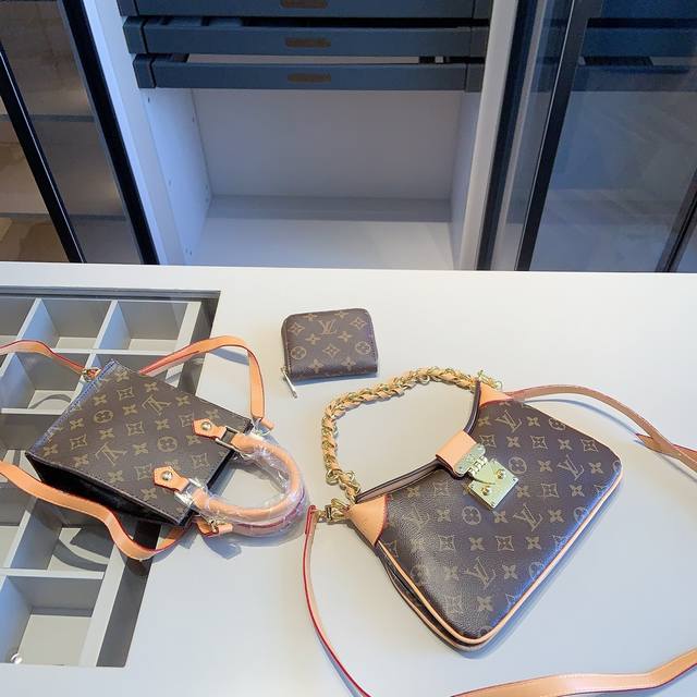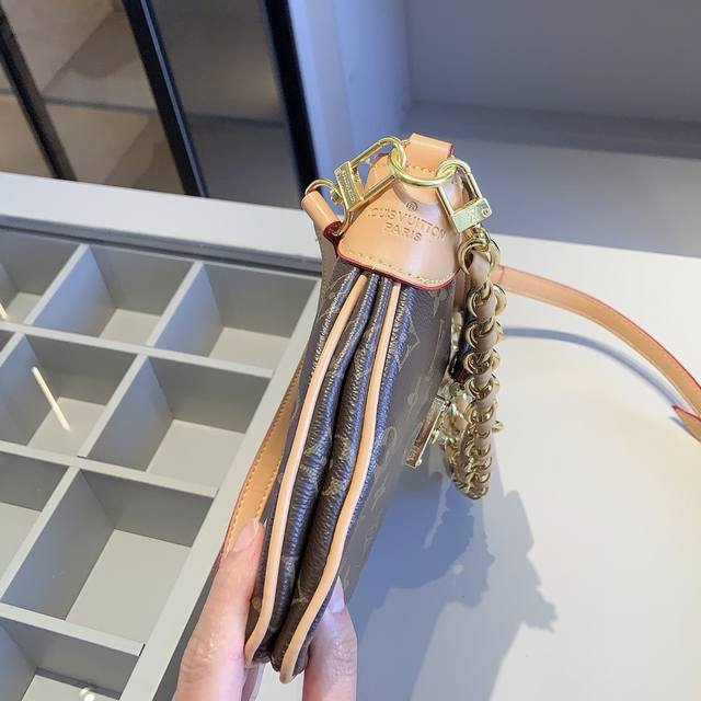 产品介绍 Lv专柜超值组合!老花系列~Lv专柜新款twinny牛角包!潮爆全球!两条肩带非常实用!原版面料原版五金!搭配lv专柜同款迷你琴谱包~可手提可肩背!时尚百搭!外出首先同系列老花小钱包搭配感十足!