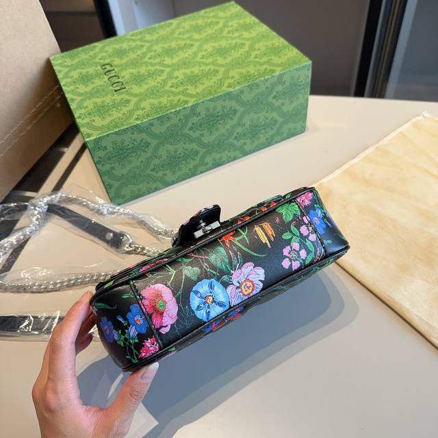 升级版全套包装!原版飞机盒折叠礼盒gucci 新款花卉marmont系列~链条包高端货!各大明星追捧的爆款~采用最好的五金配件!经典logo!原版牛皮面料~顶级做工!堪比专柜品质 Size:中号22*12 大号26*15
