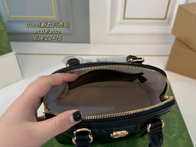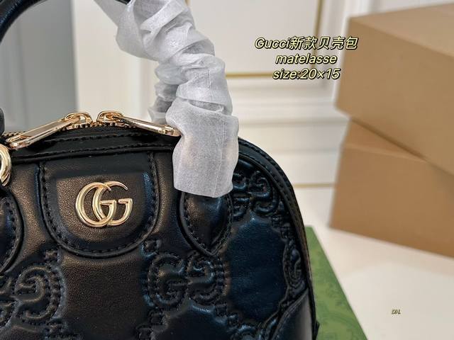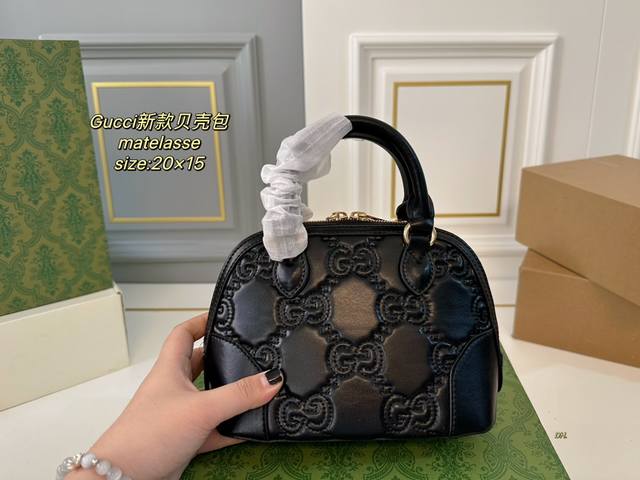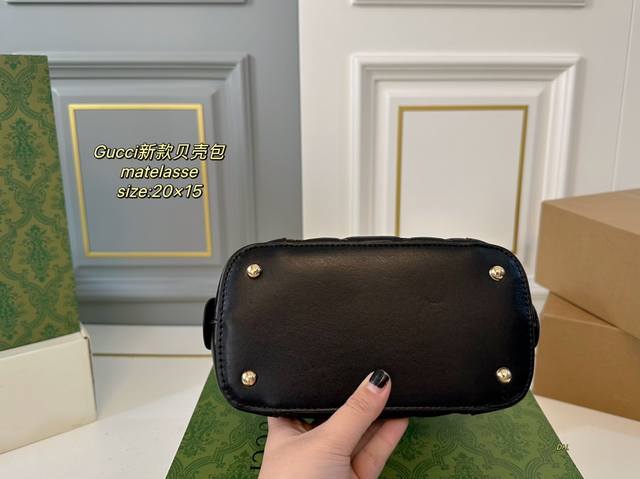 / 折叠盒飞机盒 Size:20×15 Gucci古驰matelasse系列贝壳包 配有织物宽肩带 可手提斜挎 富有纹理感gg图案,超柔软皮革 高级具有时尚的经典魅