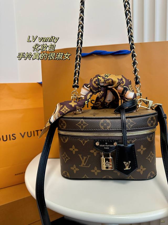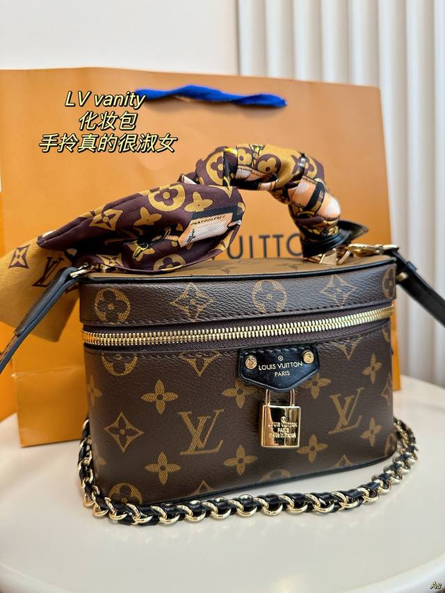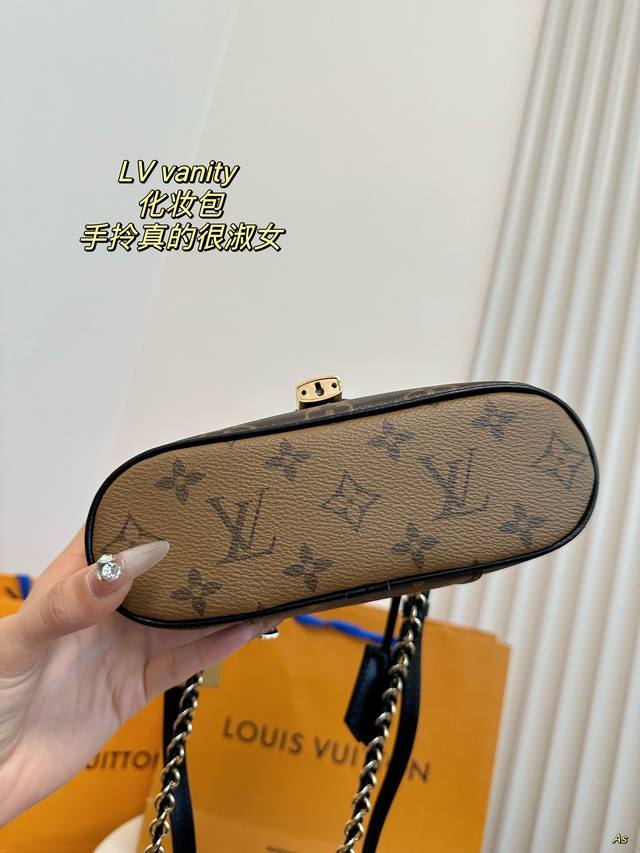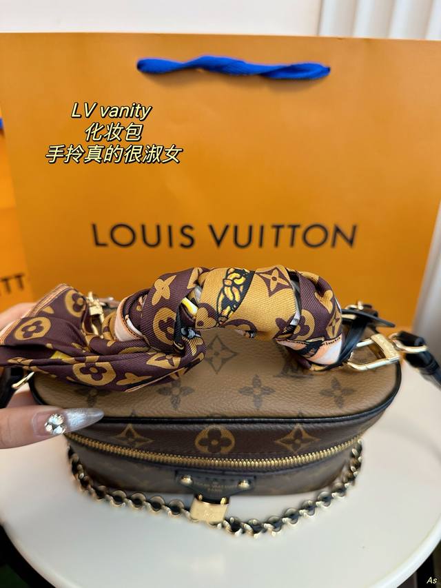 / 折叠盒飞机盒 Lv Vanity化妆包 真的对盒子包没有抵抗力,真的太爱了,手拎真的好淑女。一眼相中,必须带回家,太好搭了。 尺寸:18*12