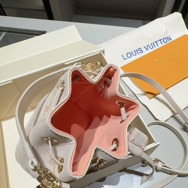 高端货lv路易威登新款nano 全皮草莓牛奶印花系列~迷你水桶包!专柜同款~可手提可肩背!走到哪都是回头率原版全牛皮 原版顶级k金五金 完美走线 同等品质绝对价位最低哦平时出门的小东西都可以装!原版折叠礼盒包装 Size:13*17*10