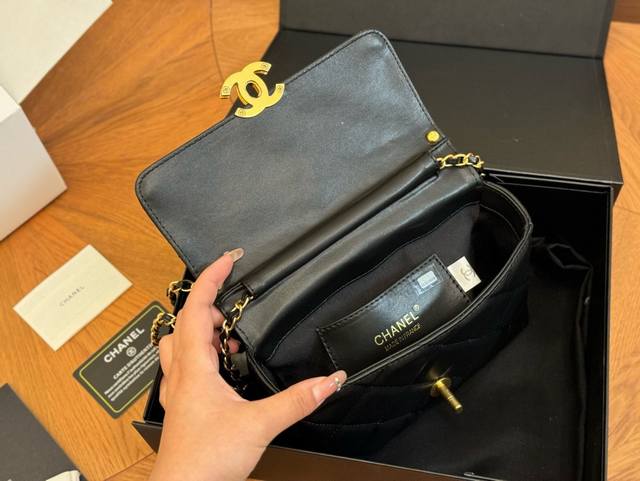 礼盒包装 Chanel香奈儿新款手提包链条包 珐琅扣手柄很吸睛哦! 斜挎链条也是刚刚好, 内里两层容量,手拎也可斜挎。...