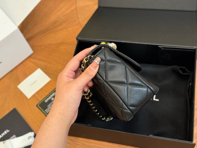 配折叠盒飞机盒 Size:20*14Cm 香奈儿 24A新款珍 珍珠手柄设计 又可以装饰包包又可以做手柄手提 太闪太亮 妥妥手链放到了包上,奢华精致!