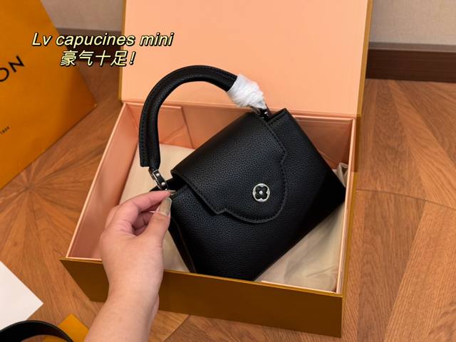配折叠盒 Size 21.14Cm Lv Capucines迷你手袋 全粒纹taurillon牛皮裁制 感觉低调 但有奢华质感 !!