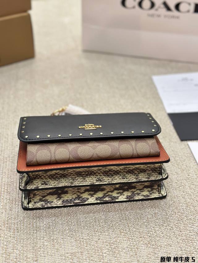 C家新款klare翻盖小方包 这款包包看起来,可以说是非常的精致优雅,经典的同时又不失设计感。侧面采用了蛇纹包边,个性又有气质,金属五金链条,但是非常轻巧。有两种背法,斜背或单肩,完全不用担心搭配,一年四季都可背!尺寸:21.5*16Cm