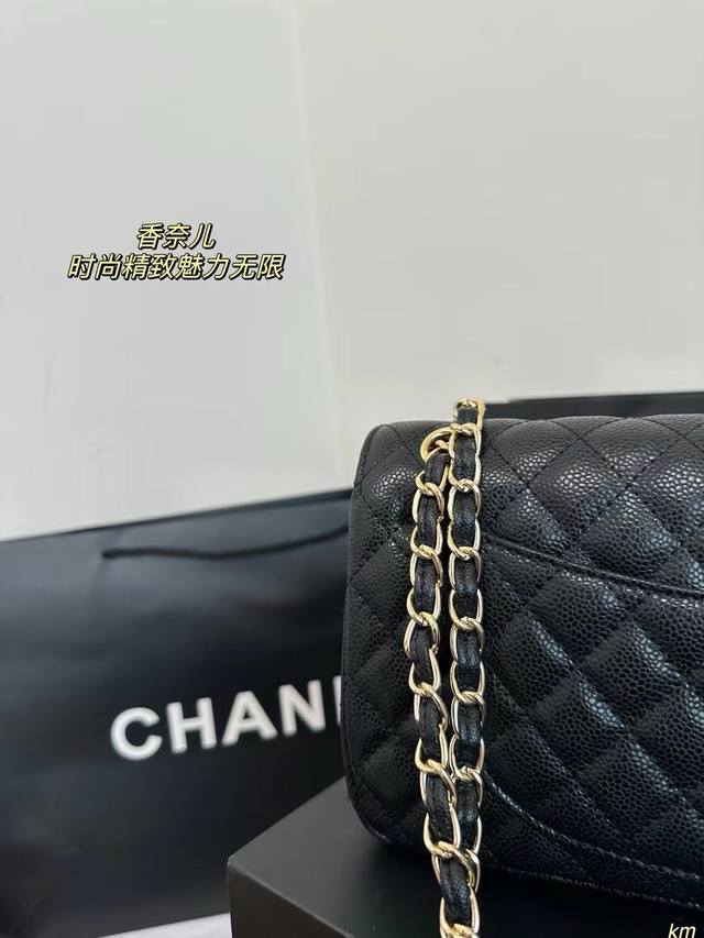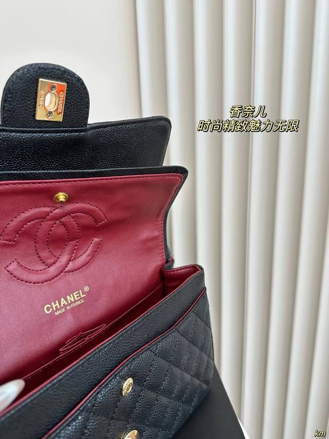 配飞机盒+折叠礼盒 全新尺寸:23Cm Chanel Classic Flap Cf经典 鱼子酱系列...