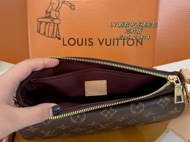 芯片版 折叠盒飞机盒 Size:24×14 Lv新款中古骆驼包 轻便舒适,实用百搭 配有双肩带 多种背法 时髦复古,出街必备