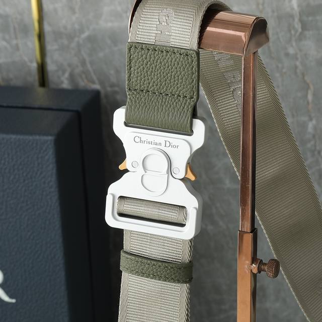 可调节 Christian Dior 尼龙提花肩带搭配皮革细节和 Cd 标志铝扣