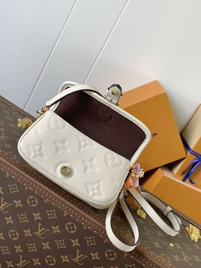 M83592 蓝色顶级原单 本款 Nano Diane 手袋浓缩 Diane 手袋的经典构型,为 Monogram Empreinte 皮革渲染双重色调。圆润翻盖、考究镶边和腰带式磁扣开合灵动展现原型的标志性细节,可拆卸手柄和可拆卸并调节的肩带实现多种背携方式。