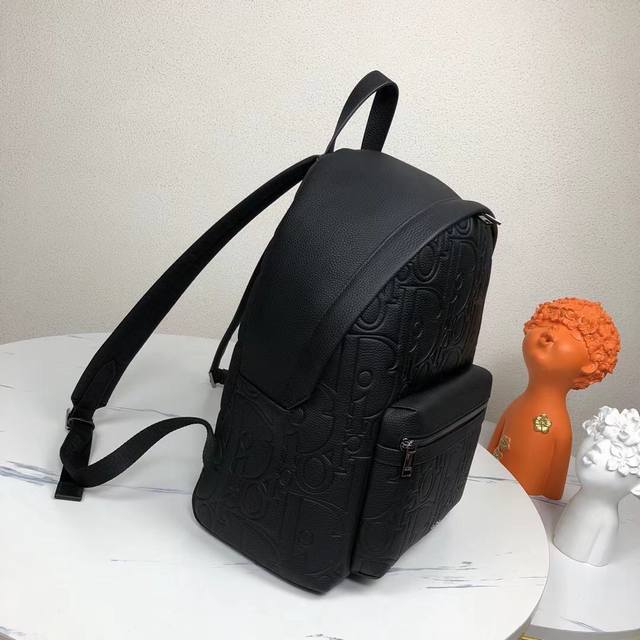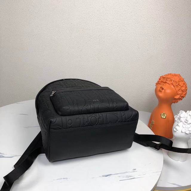这款 Rider 2.0 拉链双肩背包为 Dior 的经典单品推出全新版本。Dior Gravity 印花效果皮革采用压花工艺将经典图案精致地呈现于黑色牛皮革之上,正面饰以 Dior 标志,充分彰显 Dior 工坊的精湛工艺。双向拉链开合,搭配正面大号拉链口袋和可调节的加垫肩带,是日常生活的理想手袋。
