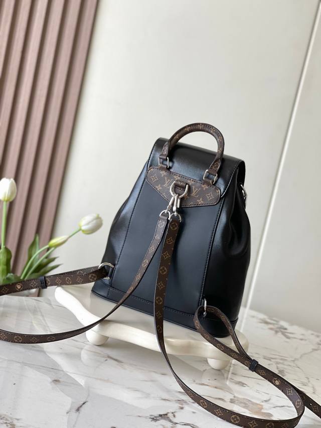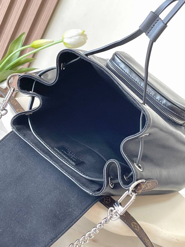 / 动态芯片,原单加强版+半钢五金,进口羊皮 Montsouris 小号双肩包 M12587黑皮 为亮泽羊皮革融入 Monogram Xph细节,巧妙道出lv Vi