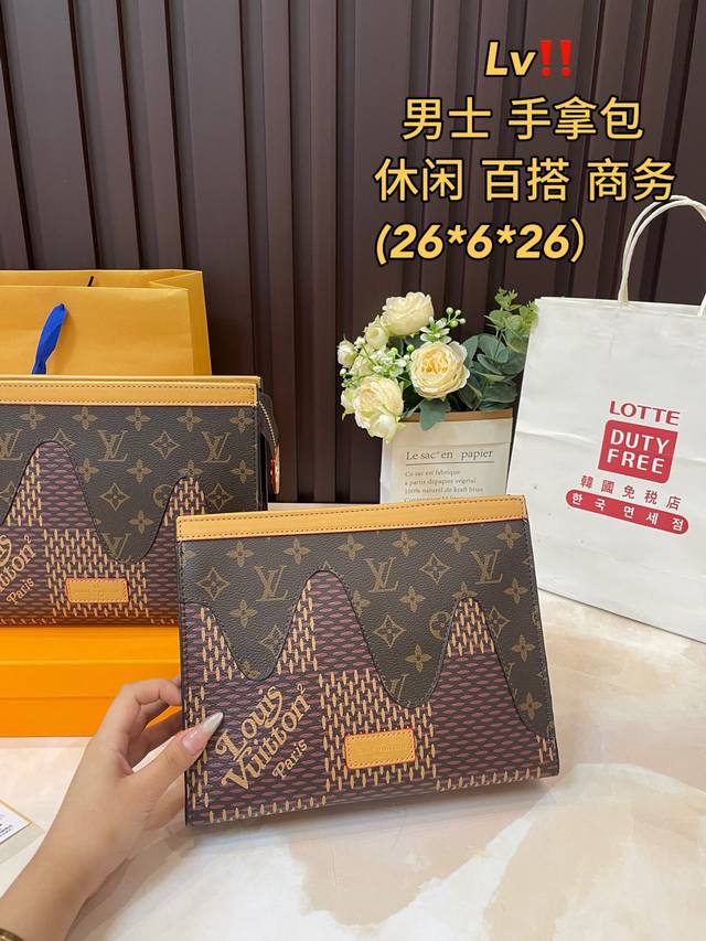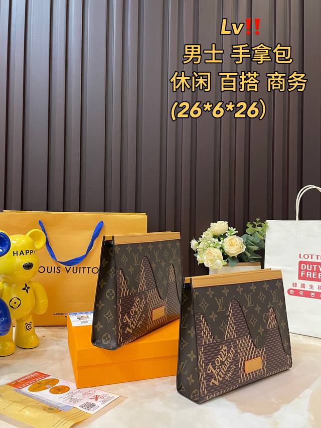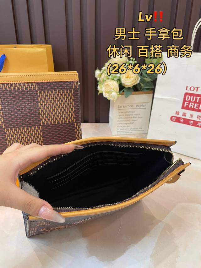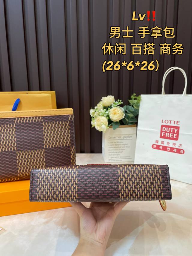 礼盒包装 洗漱包太适合春夏啦 单美到无法无天的款式 今年简直引领时尚最in元素 质量一直在升级 原单牛皮 全套包装 身份卡男士手包 24Ss新款 Pochette黑色男士手拿包手袋 男女通用哦 红包]大手包 洗漱包 能放手机 平板电脑大量钞票 原版内里,原版包装!爆版尺寸:26Cm
