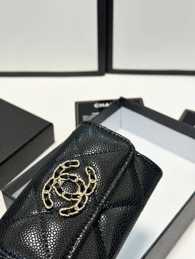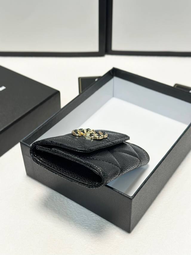 / 颜色 黑尺寸 10X5Cf卡包对版,小红书主推款,羊皮金扣五金内带编码,高版本全套礼盒包装,现货
