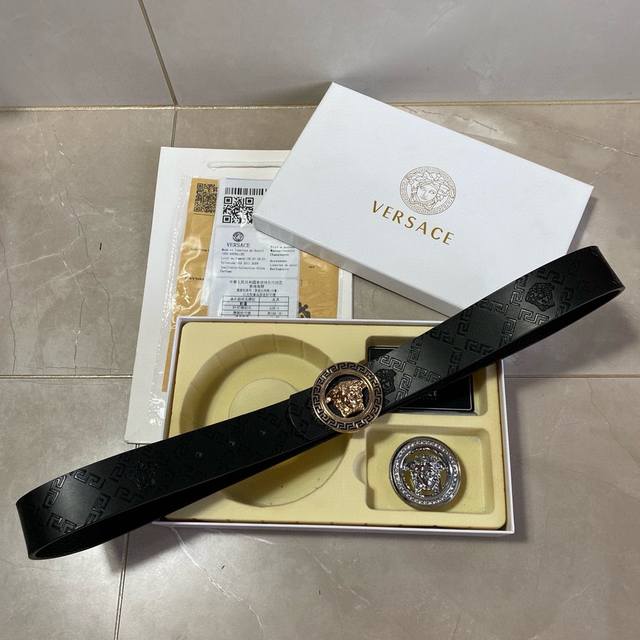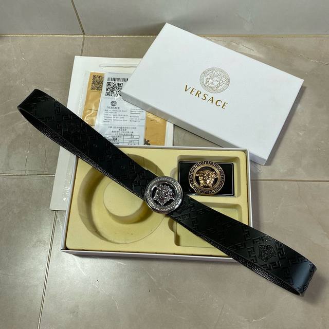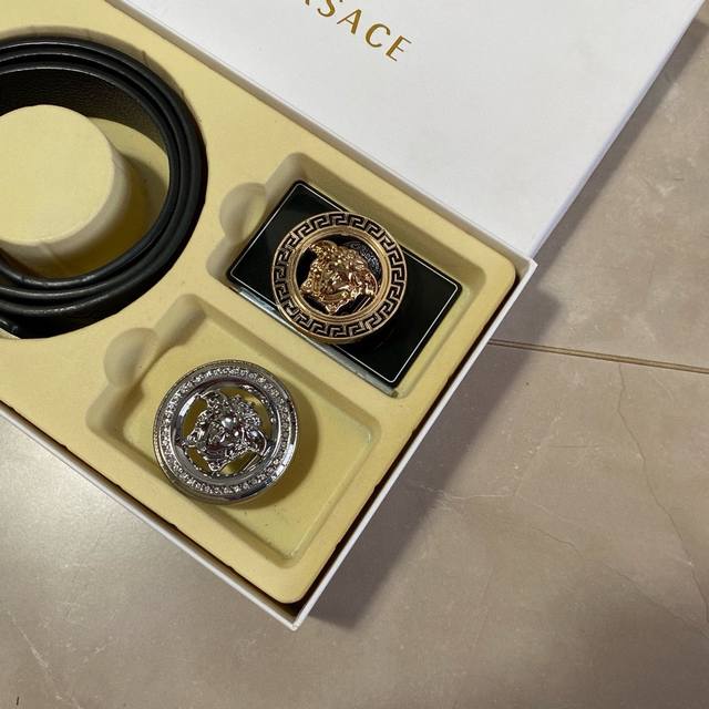 Versace精品款 ☆双扣礼盒套装 含礼盒 专柜有售 范思哲专柜在售正品 此款采用头层牛皮制作 走线油边细致 正品开模 搭配广州原版扣经久耐用、3.8Cm规格
