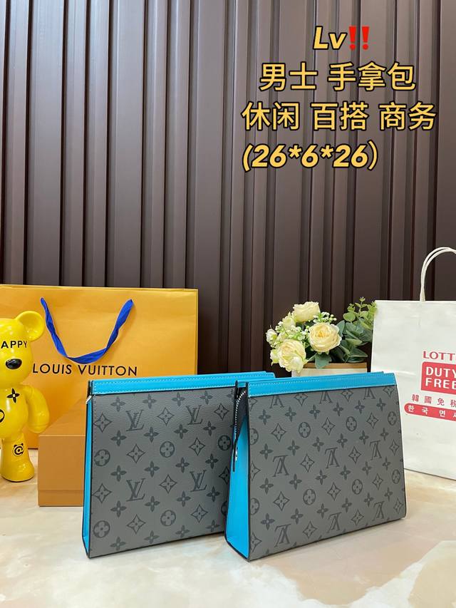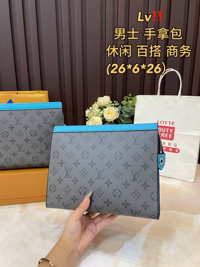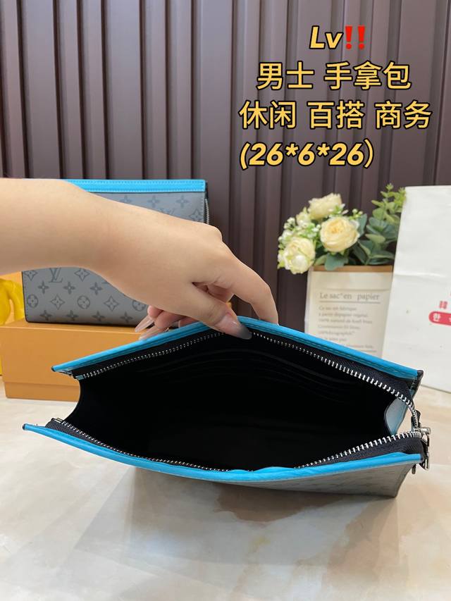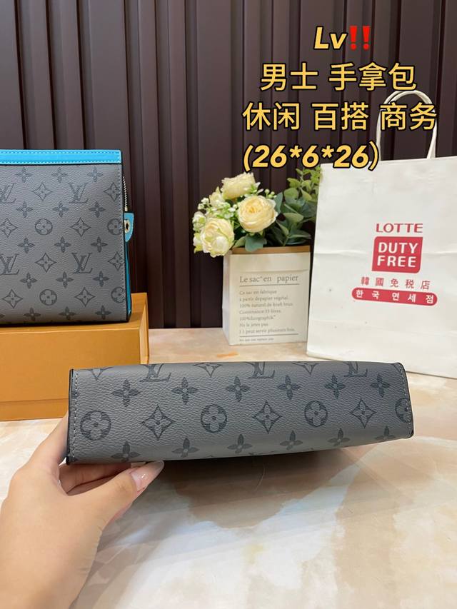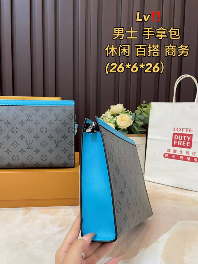 礼盒包装 洗漱包太适合春夏啦 单美到无法无天的款式 今年简直引领时尚最in元素 质量一直在升级 原单牛皮 全套包装 身份卡男士手包 24Ss新款 Pochette黑色男士手拿包手袋 男女通用哦 红包]大手包 洗漱包 能放手机 平板电脑大量钞票 原版内里,原版包装!爆版尺寸:26Cm