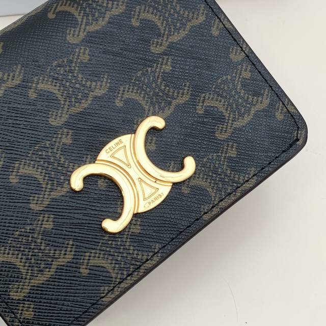 Celine 16333颜色 黑色印花尺寸 10.5*7*1新款凯旋门卡夹,Celine短式卡包非常炫美的一个系列,专柜同步,采用头层牛皮,精致时尚!