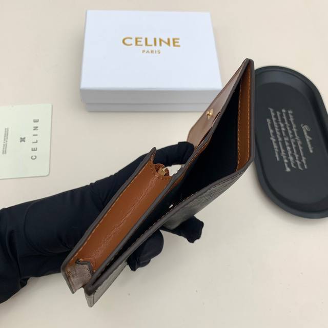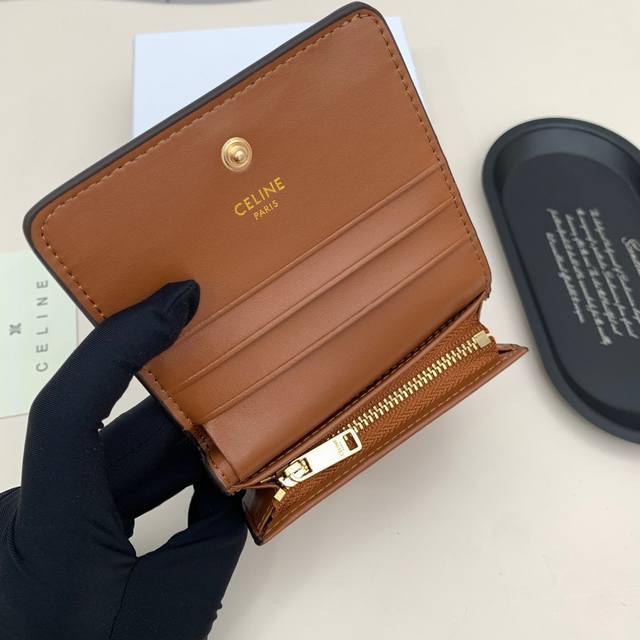 Celine 10523颜色 黑 棕尺寸 11*10*5 Celine短式钱包非常炫美的一个系列,专柜同步,采用头层牛皮,精致时尚!