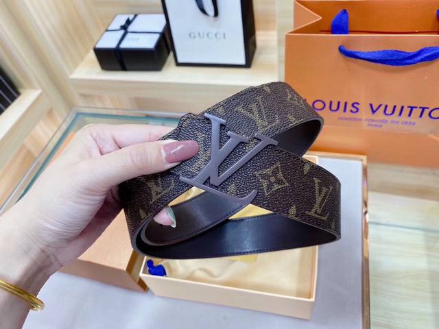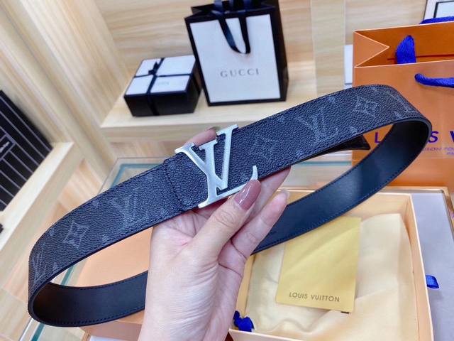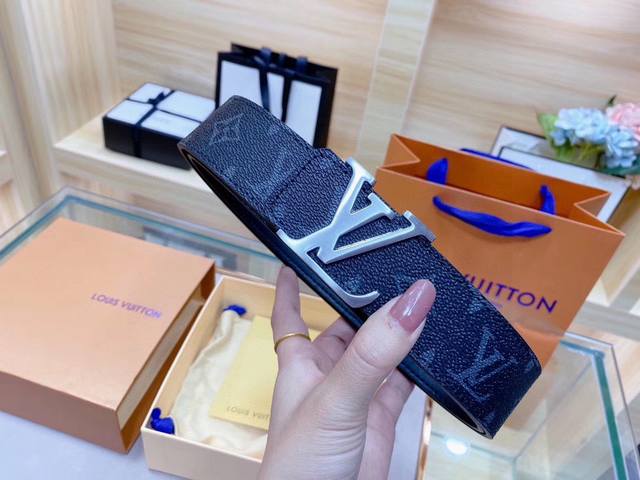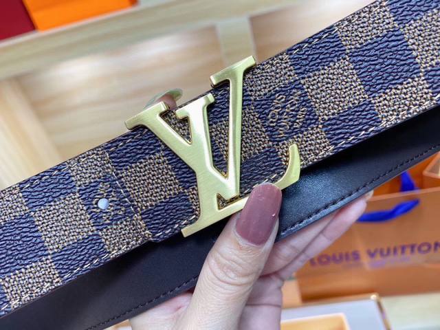 路易威登 Lv 双面进口原版皮皮带采用双线设计 精钢扣 不褪色 双色 金色 银色 随意搭配 带身宽度3.8Cm...