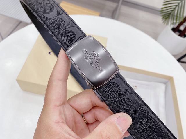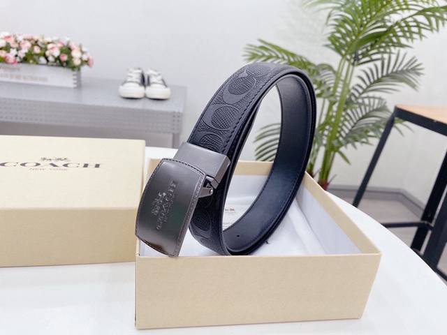 / 原单货---[飞吻]Coach 蔻驰皮带 双面男士腰带礼盒装皮带,精致原版扣,双面可用 宽度3.5Cm。私密渠道!专柜原单。