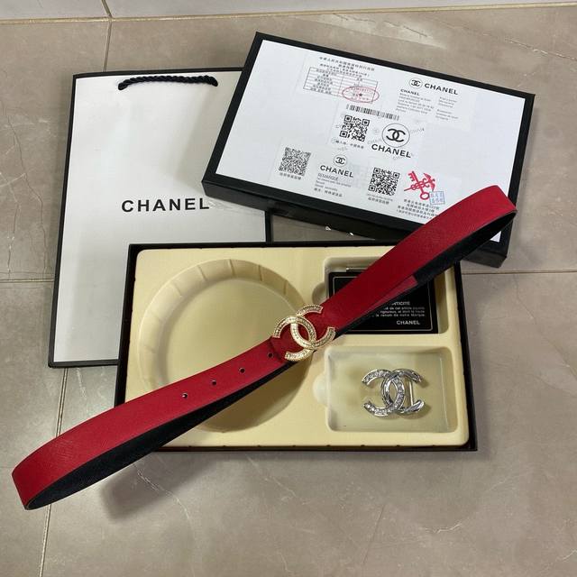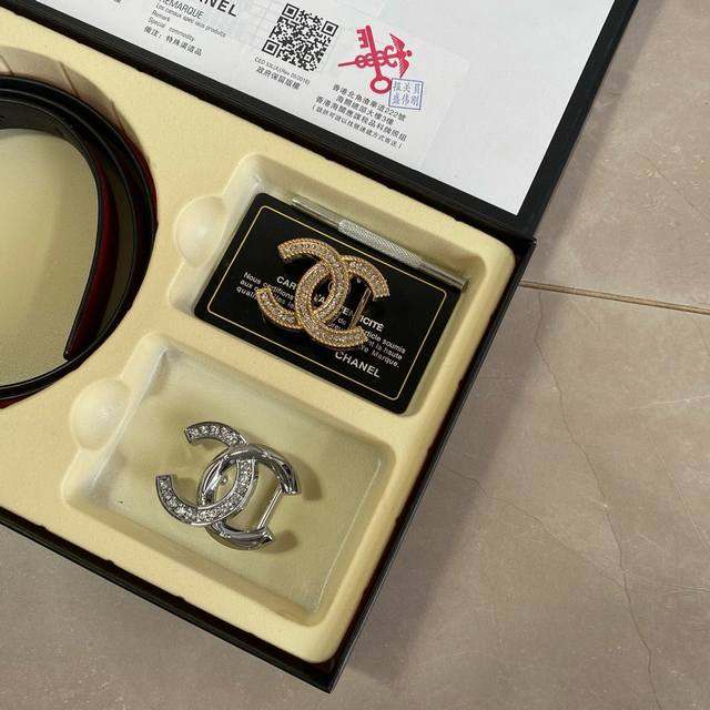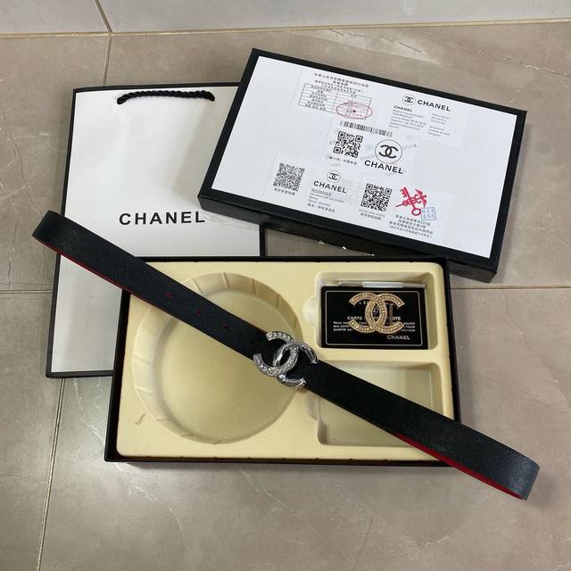 香奈儿chanel 精品款 ☆双扣礼盒套装 含礼盒 专柜有售 香奈儿chanel专柜在售正品 此款采用头层牛皮制作 油边细致、☆正品开模 搭配原版仿铜扣五金 2.5Cm规格 送打眼针