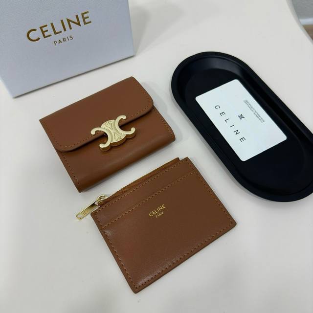 Celine 10523颜色 黑 棕尺寸 11*10*5 Celine短式钱包非常炫美的一个系列,专柜同步,采用头层牛皮,精致时尚!