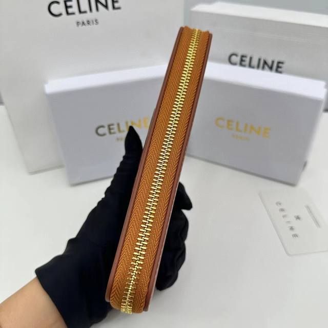 Celine A13颜色 黑色 棕色尺寸 19*10.5*3.5 Celine 专柜同步,Triomphe Cuir大号拉链钱夹 ,光滑小牛皮材质,小牛皮衬里,