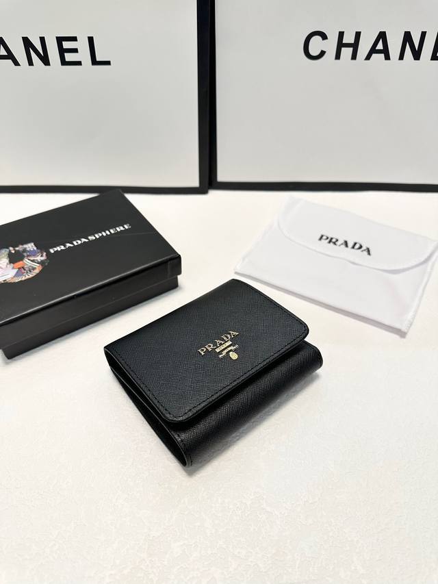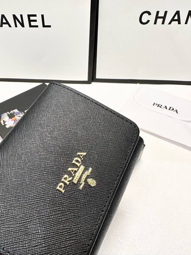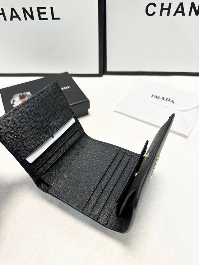 颜色 黑尺寸 11X10普拉达时尚钱包,优质十字纹牛皮高档五金配件,内阁丰富,超级实用现货高品质