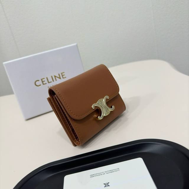 Celine 10523颜色 黑 棕尺寸 11*10*5 Celine短式钱包非常炫美的一个系列,专柜同步,采用头层牛皮,精致时尚!