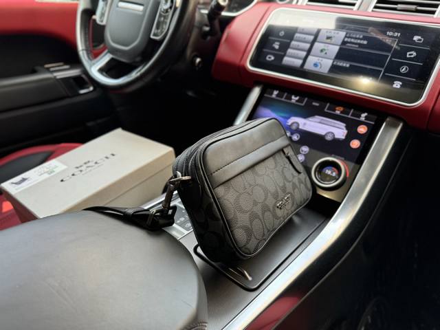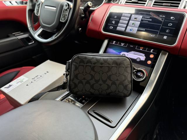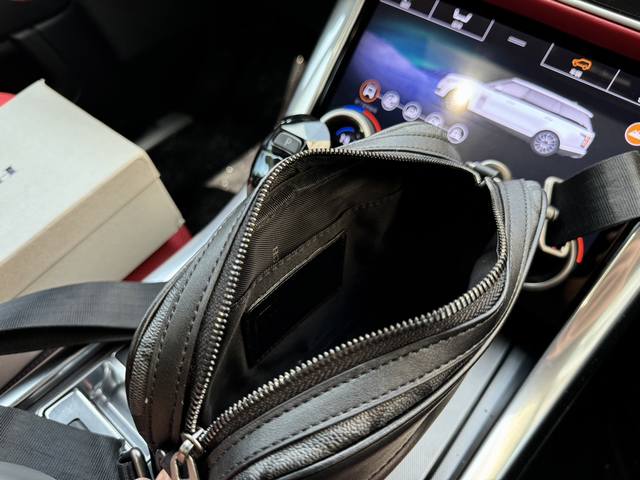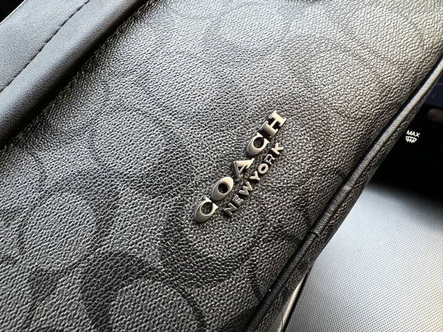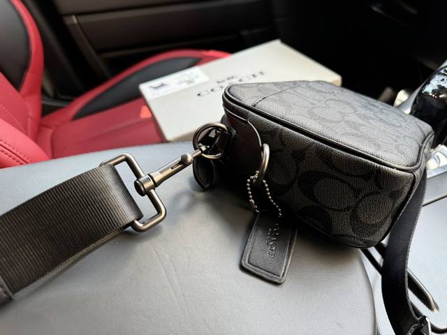 / 高端货 新款 “Coach蔻驰”相机包 Coach蔻驰 Graham 24 经典老花满印拉链开合相机包 Pvc 单肩斜挎包 中号 男款 黑灰色。高清五金logo