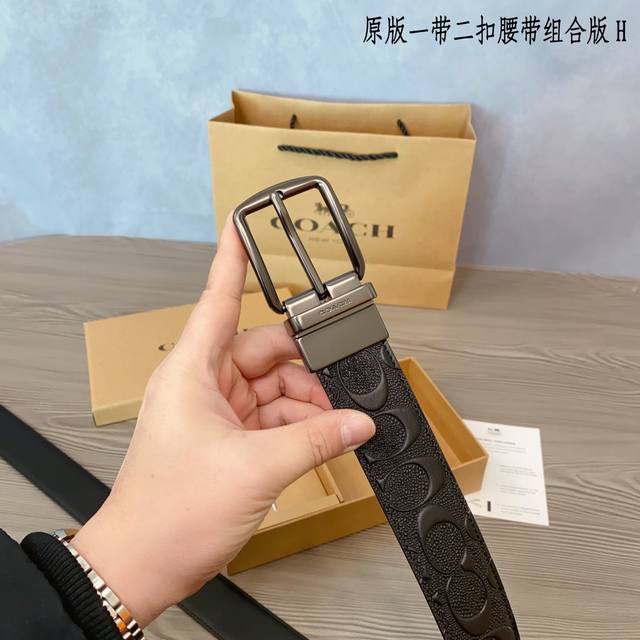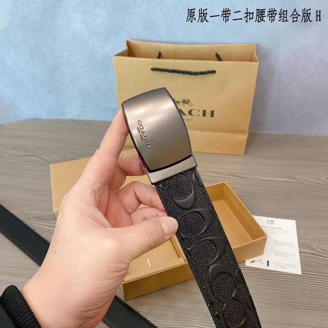 蔻驰男士腰带礼盒,可自由截取长短、双面双色,配2个的扣头 买一盒等于4条皮带。