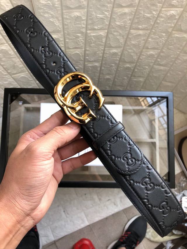 原版品质打孔 品牌:古奇G家 男款 颜色:黑 扣头:金 黑 扣头:原版精品纯铜五金扣头 带身:原版牛皮 尺寸:宽约:3.8Cm...