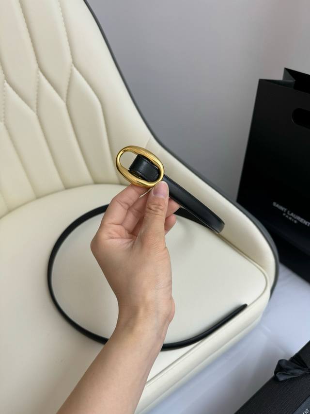 2024 开春秀款saint Laurent 圣罗兰女士腰带皮带 原厂真金电渡扣头,意大利原厂皮,宽1.5Cm,代购级。