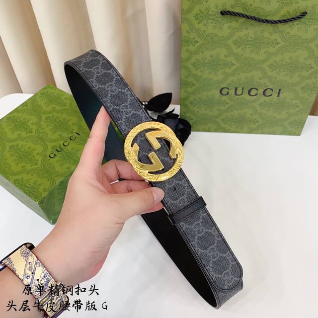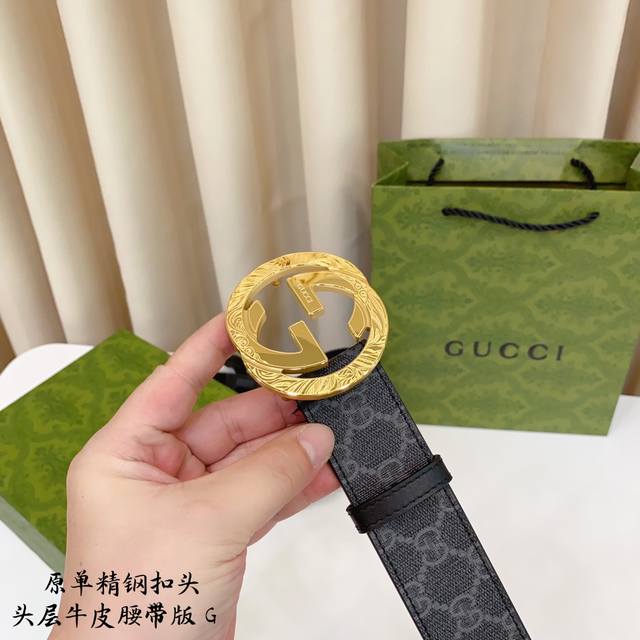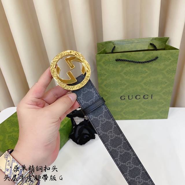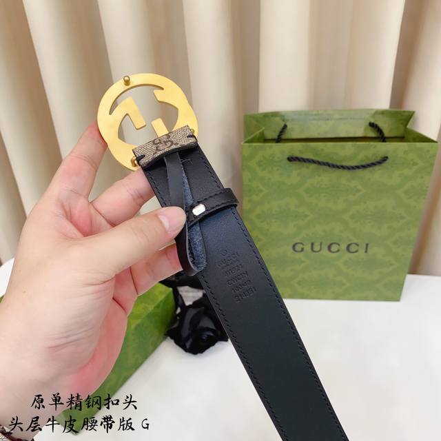 Gucc古奇g家 原单新品 带身采用雙面意大利進口原廠牛皮纹 非市场普通版本 黑色经典配色 百搭适合各种场合 扣头精品设计注意细节 宽度3.5Cm