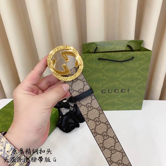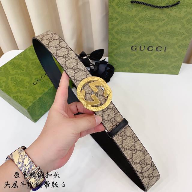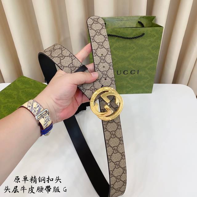 Gucci 原单腰带,双面可用进口牛皮,转动精品五金扣头,宽度3.5Cm