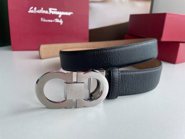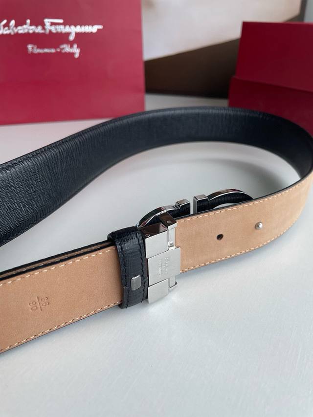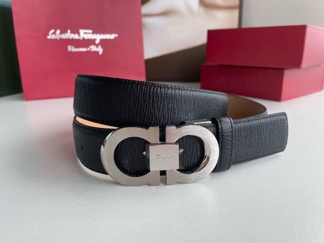 Salvatore Ferragamo菲拉格慕 意大利 男士腰带3.5Cm头层牛皮纹理,精钢斜切边特殊工艺扣头,别致款!