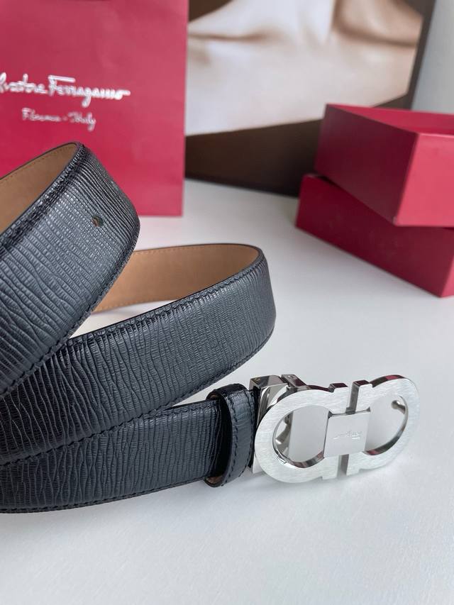 / Salvatore Ferragamo菲拉格慕 意大利 男士腰带3.5Cm头层牛皮纹理,精钢斜切边特殊工艺扣头,别致款!