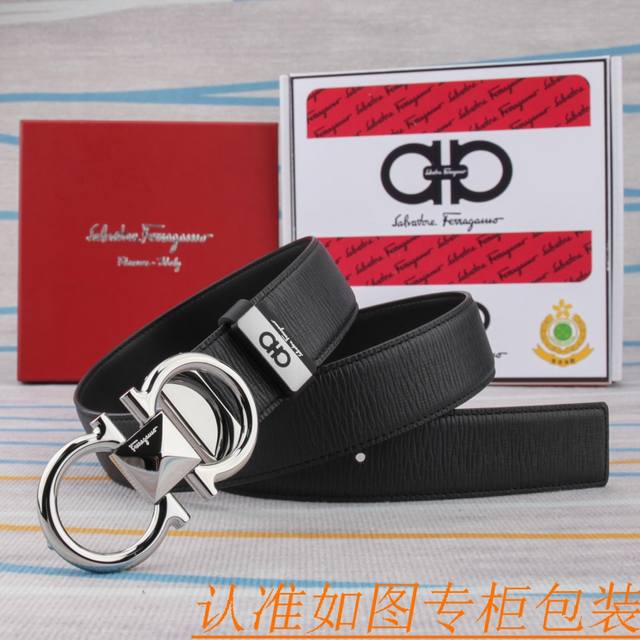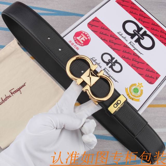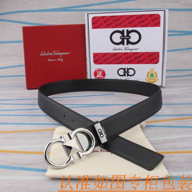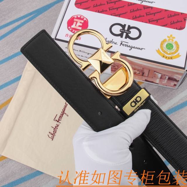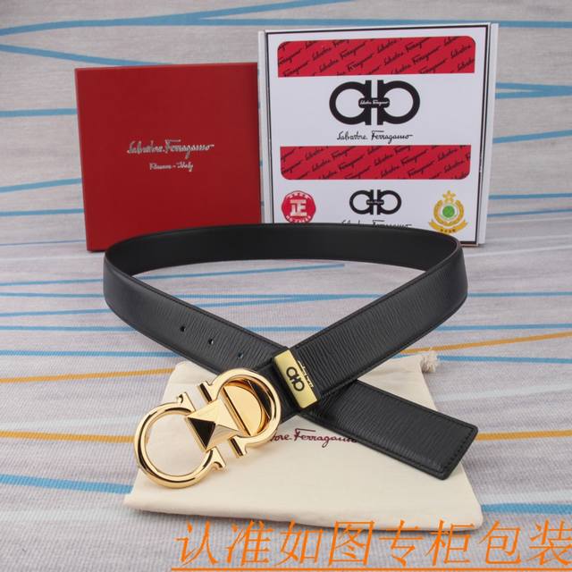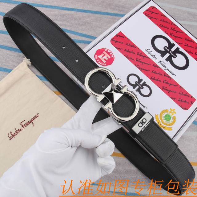 菲拉格慕 Salvatore Ferragamo 意大利 宽度3.5Cm 精美扣头 不褪色 小牛皮 手感极佳 上身郊果棒 商务休闲两用