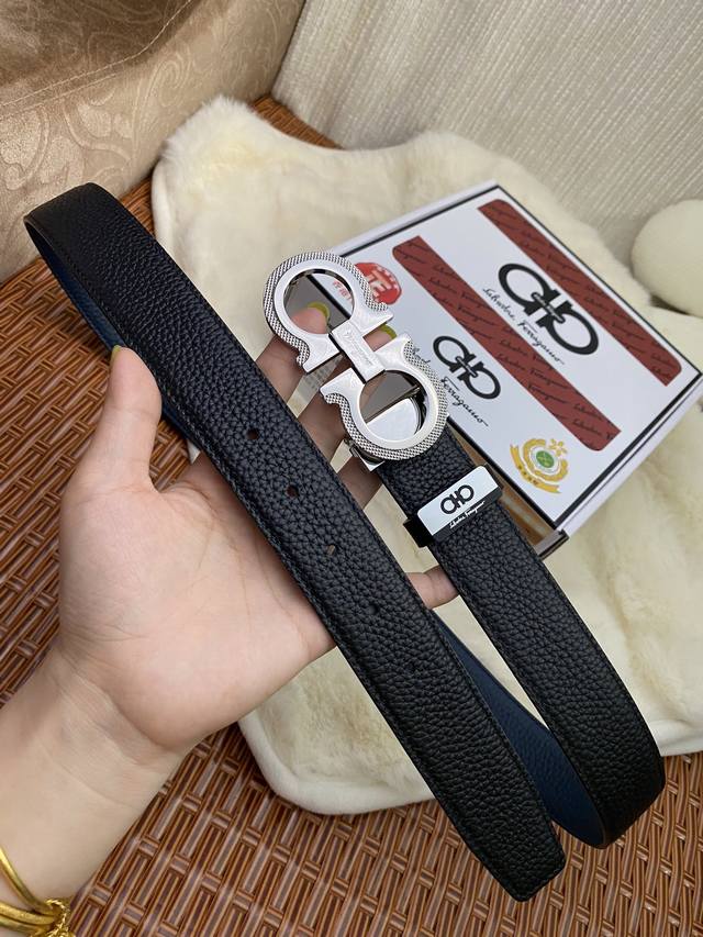 菲拉格慕 原单双面进口小牛皮带身 搭配原单精品钢扣。原产皮料定制,专柜宽度3.5Cm. 温馨提示:长度100- Cm...