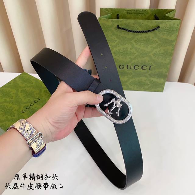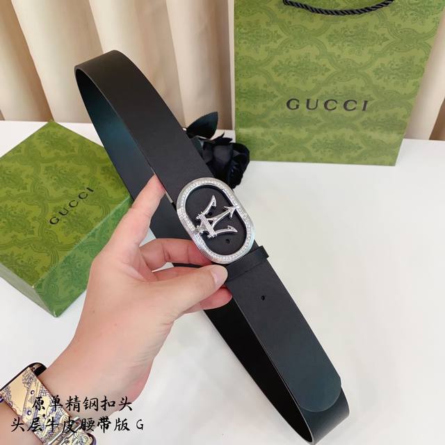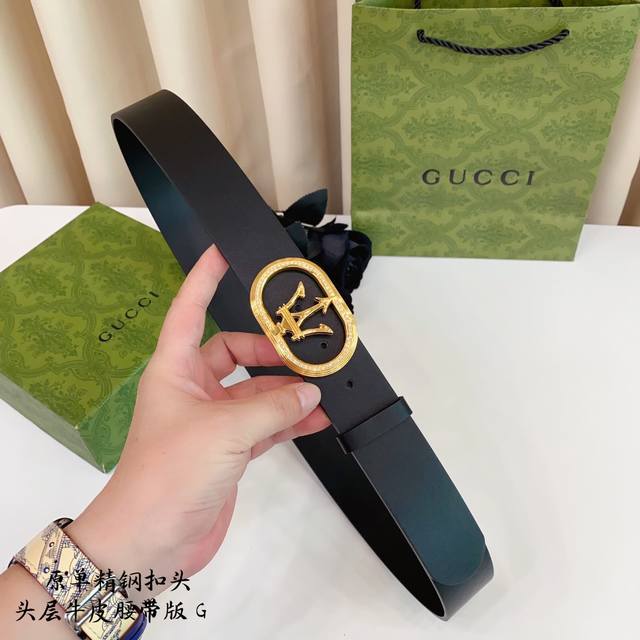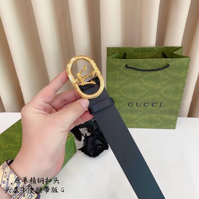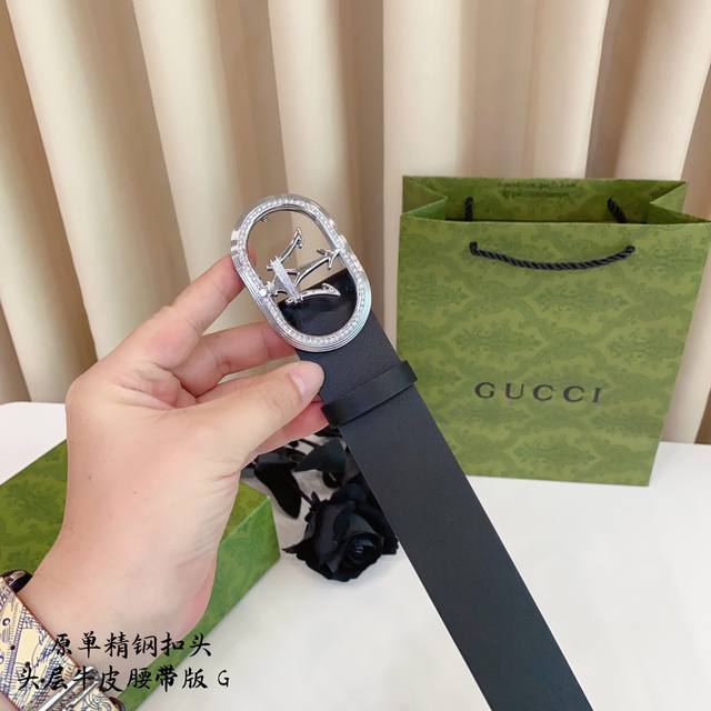 Gucc古奇g家 原单新品 带身采用雙面意大利進口原廠牛皮纹 非市场普通版本 黑色经典配色 百搭适合各种场合 扣头精品设计注意细节 宽度3.8Cm