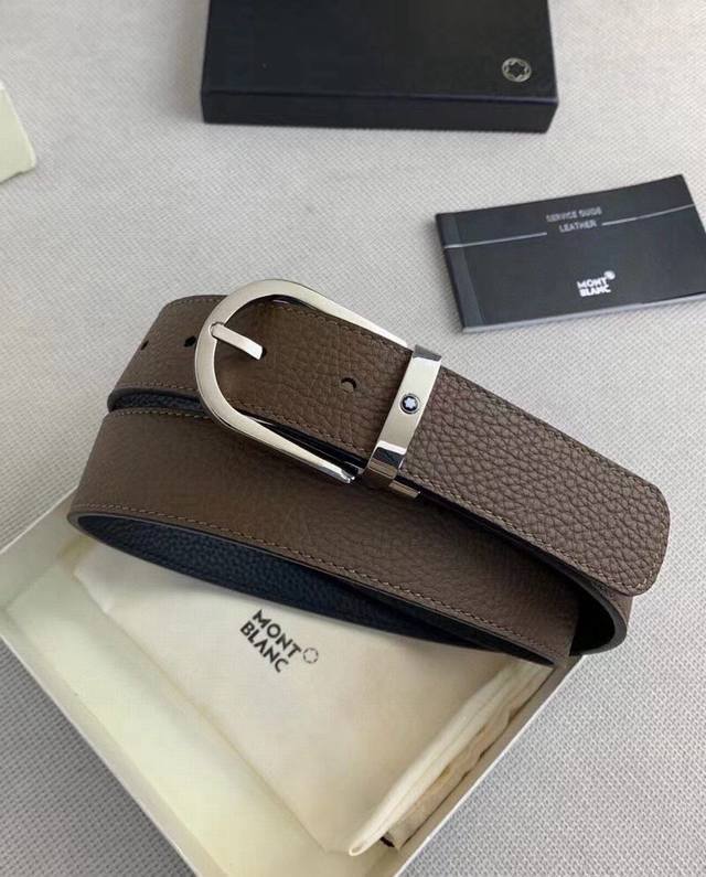 / 品牌: 万宝龙 原版五金系列 等级:原版荔枝纹 3.5Cm 上身效果高档,设计不断创新,始终保留着风格和品位,演绎时尚,自信活力。 扣头:18K纯钢扣 黑配卡其