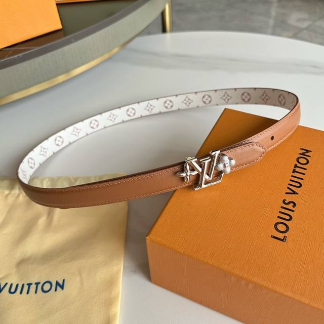 寬度:20Mm Lv S-Lock系列 寬度20Mm 驢家法國驢女士腰帶 全新風格定制帆布面料襯托細膩的進口小牛皮 全新設計搭扣 融入字母和花卉图案 与腰带相结合雙面用