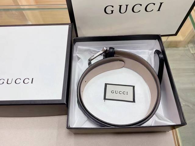 Gucci 古奇 钢扣牛皮腰带 男士经典款皮带 多色可选 时装搭配必备款 优质扣头 采用原厂牛皮带身 高品质全套包装 礼盒 礼袋 小票