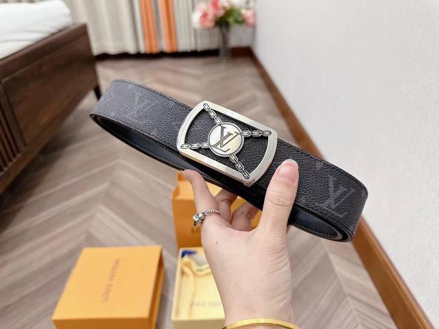 路易威登louis Vuitton 法国 专柜品质 官网同步 宽度3.8Cm 精美钢扣头 原版意大利双面进口小牛皮原版花纹 手感极佳 上身郊果棒 商务休闲两用