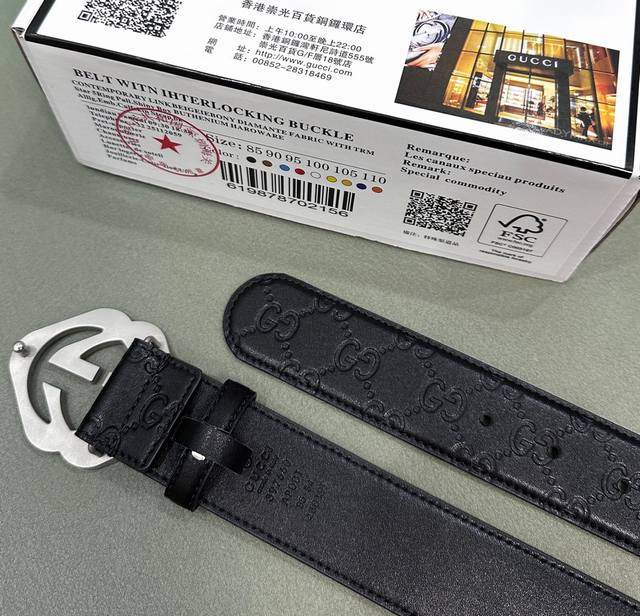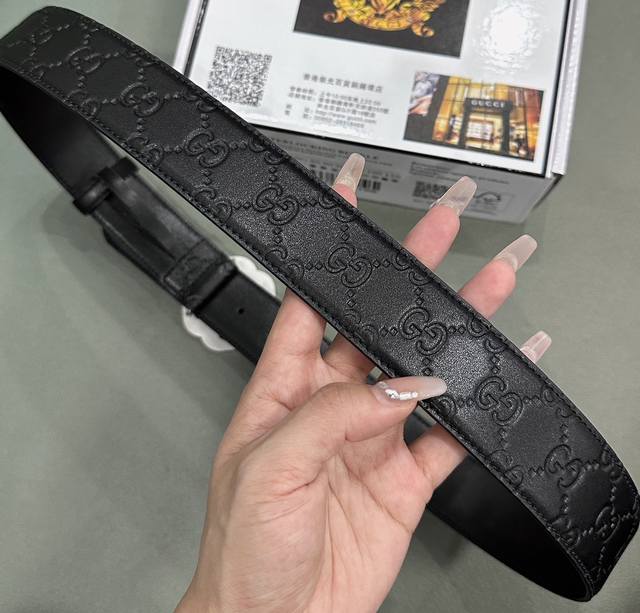 古弛 Guccl 男士腰带 带身采用进口牛皮压花纹 搭配内穿扣 宽4.0Cm细节请看图皮带腰带