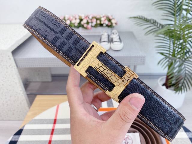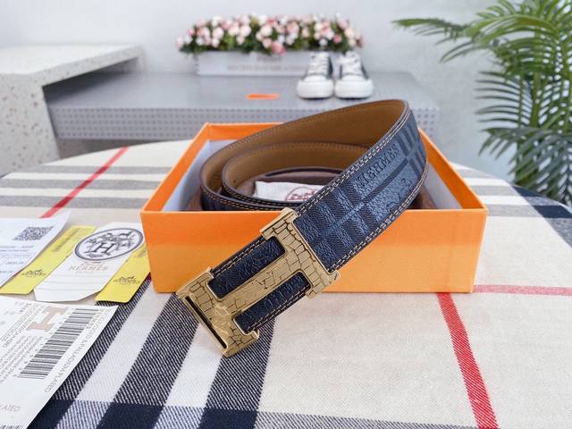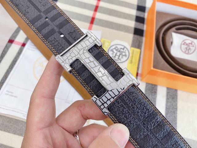 爱马仕品牌气息浓厚采用头层牛皮制作 结实耐用 迎合商务风格,上身效果超好,细节一流,商业潮男搭配休闲时尚 3.8厘米
